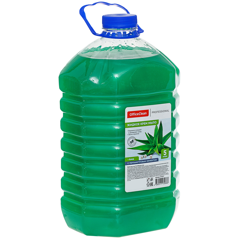 Жидкое крем мыло предназначено для мытья рук и тела. Экономичная упаковка 5л, канистра с крышкой и удобной ручкой. Вода питьевая, лауретсульфат натрия,диэтаноламиды жирных кислот, кокамидопропилбетаин, хлорид натрия, перламутр, консервант,лимонная кислота, краситель, парфюмерная композиция<br/>Данное жидкое мыло легко и удобно использовать по назначению при помощи диспенсеров OfficeClean:<br/>295497, 304144, 312822, 299009, 311825, 311286, 313466, 313467, 313464, 267509, 267510, 267511, 267512, 267513