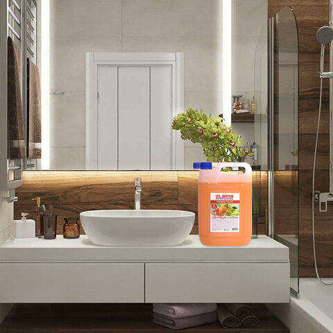 Средство универсального применения отлично очищает и смягчает кожу, обеспечивает уход и увлажнение, обладает приятным ароматом эфирных масел. Подходит для всех типов кожи и не содержит формальдегида. Большого объема 5 л хватит надолго, что позволит сэкономить время и средства. При необходимости можно перелить во флакон с дозатором.