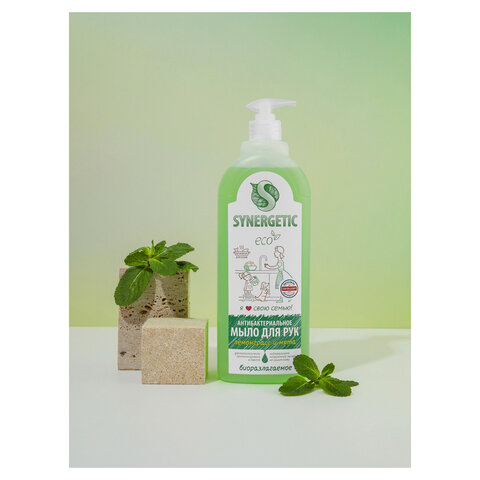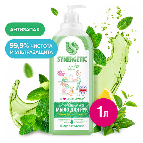 Антибактериальное увлажняющее жидкое мыло SYNERGETIC "Лемонграсс и мята" эффективно очищает кожу от любых загрязнений даже в холодной воде. Особенно эффективно против неприятных запахов. Комбинация растительных К-тензидов, морской соли и натуральных эфирных масел лемонграсса, мяты, чайного дерева, эвкалипта и тимьяна обеспечивает длительный антибактериальный эффект с защитой от микроорганизмов на 99,9%. Растительный глицерин обеспечивает интенсивное увлажнение кожи. Комплекс витаминов A, E, F повышает сопротивляемость кожи неблагоприятному воздействию внешней среды. Мультифункциональный компонент натурального происхождения софоролипид мягко очищает и сохраняет естественный микробиом кожи. Гипоаллергенное средство подходит для чувствительной кожи. Мыло дерматологически протестировано независимым исследовательским институтом Dermatest® в Германии. Биоразлагаемые компоненты безопасны для природы и человека и не вредят микрофлоре септических установок.