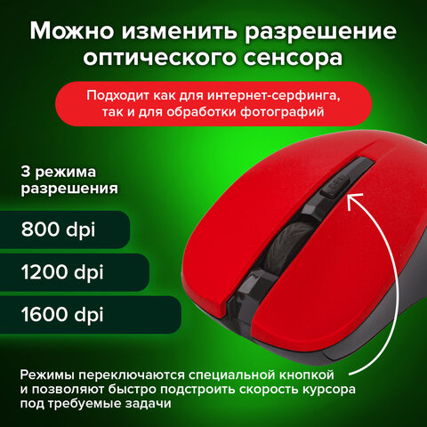 3 режима разрешения мыши 800-1200-1600 dpi переключаются специальной кнопкой и позволяют быстро подстроить скорость курсора под требуемые задачи.