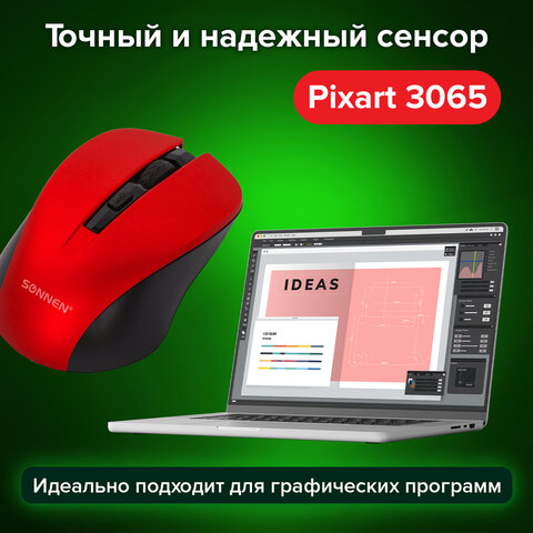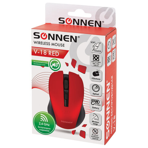 Беспроводная мышь SONNEN V-18 обладает бесшумным кликом и возможностью смены разрешения оптического сенсора, что позволяет заниматься как интернет-серфингом, так и обработкой фотографий, где от мыши требуется более точная работа.