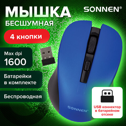 Мышь беспроводная USB, 800/1200/1600 dpi, 5 кнопок + колесо-кнопка, оптическая, SONNEN Q80, черная, 513945