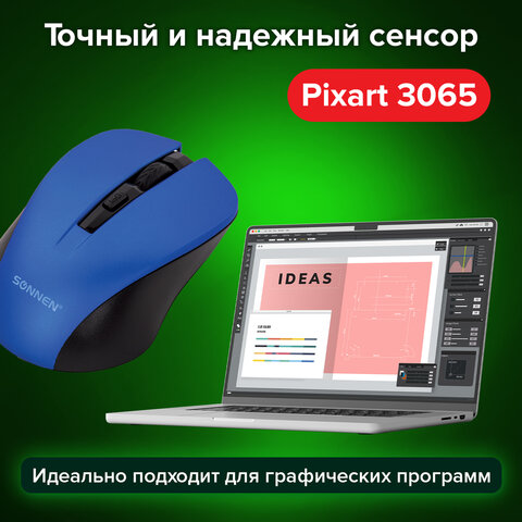 Беспроводная мышь SONNEN V-18 обладает бесшумным кликом и возможностью смены разрешения оптического сенсора, что позволяет заниматься как интернет-серфингом, так и обработкой фотографий, где от мыши требуется более точная работа.