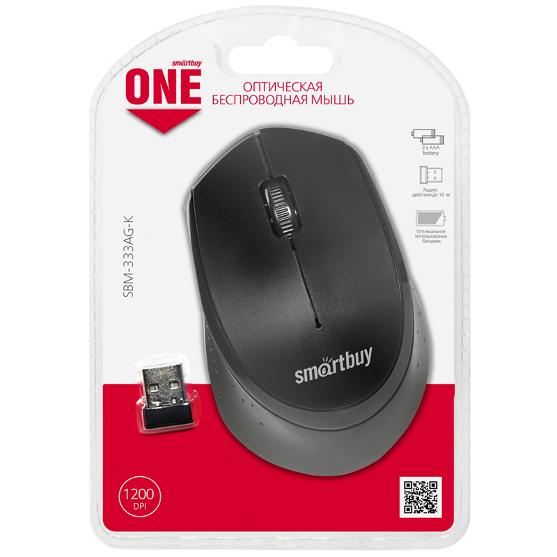 Мышь беспроводная Smartbuy ONE 340AG, черный, 3btn+Roll