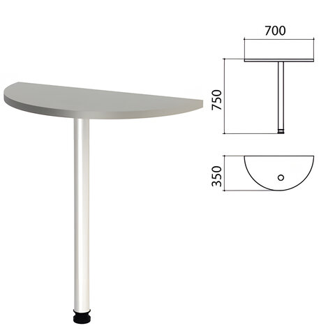 Стол приставной полукруг "Этюд", 700х350х750 мм, цвет серый (КОМПЛЕКТ)