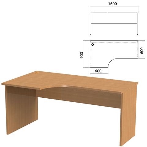 Стол письменный эргономичный "Этюд", 1600х900х750 мм, левый, бук бавария (КОМПЛЕКТ)