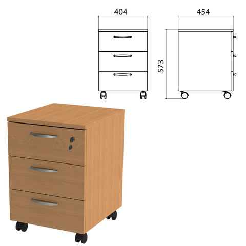 Тумба подкатная "Этюд", 404х454х573 мм, 3 ящика, замок, бук бавария