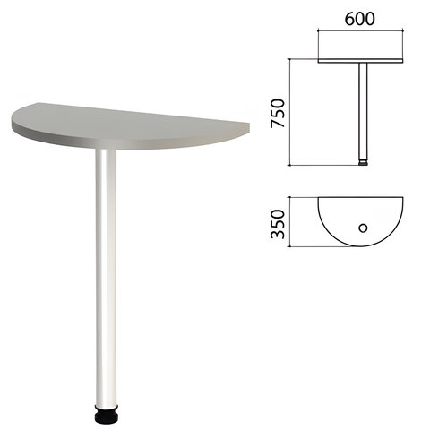 Стол приставной полукруг "Этюд", 600х350х750 мм, цвет серый (КОМПЛЕКТ)