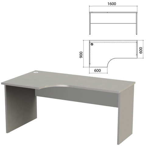 Стол письменный эргономичный "Этюд", 1600х900х750 мм, правый, серый (КОМПЛЕКТ)