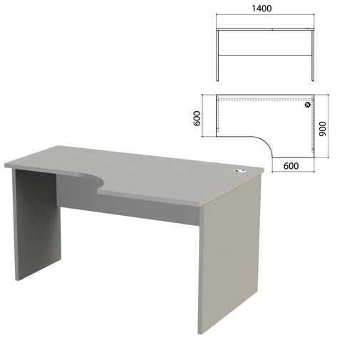 Стол письменный эргономичный "Этюд", 1400х900х750 мм, левый, серый (КОМПЛЕКТ)