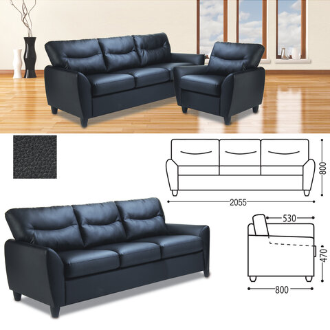 Диван мягкий трехместный "Наполи", 800х2055х800 мм, c подлокотниками, экокожа, черный