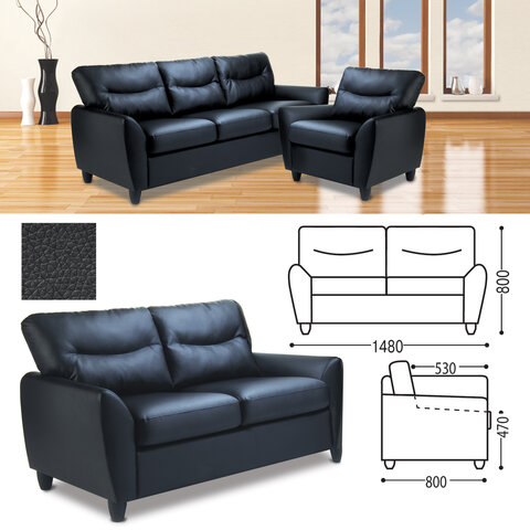 Диван двухместный "Наполи", 800х1480х800 мм, c подлокотниками, экокожа, черный