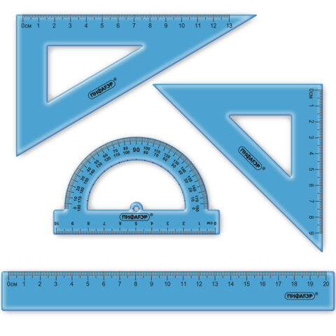 Набор чертежный ПИФАГОР (линейка 20 см, 2 треугольника, транспортир), тонированный, европодвес, 210854