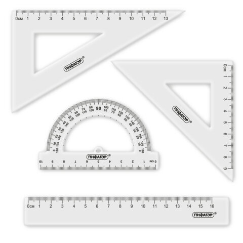 Набор чертежный ПИФАГОР (линейка 16 см, 2 треугольника, транспортир), прозрачный, европодвес, 210850