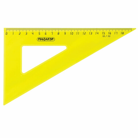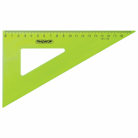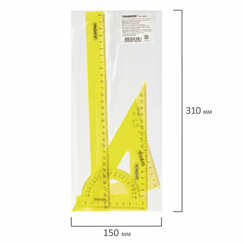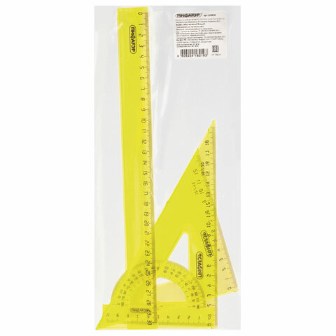 Набор чертежный большой ПИФАГОР (линейка 30 см, 2 треугольника, транспортир), прозрачный, неоновый, ассорти, 210856
