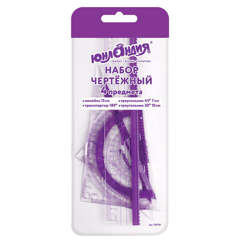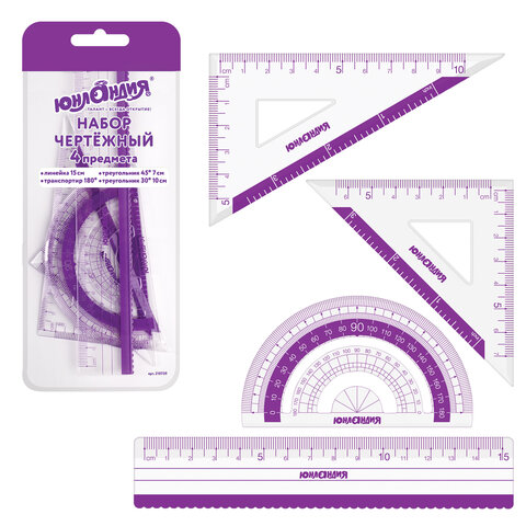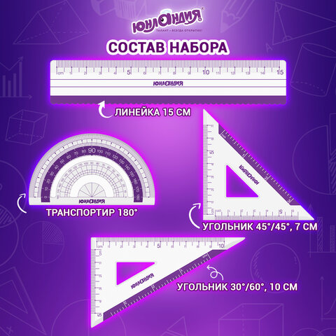Набор чертежный малый ЮНЛАНДИЯ "ГЕОМЕТРИЯ" предназначен для выполнения чертежных и измерительных работ.