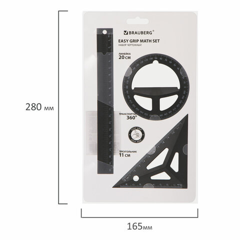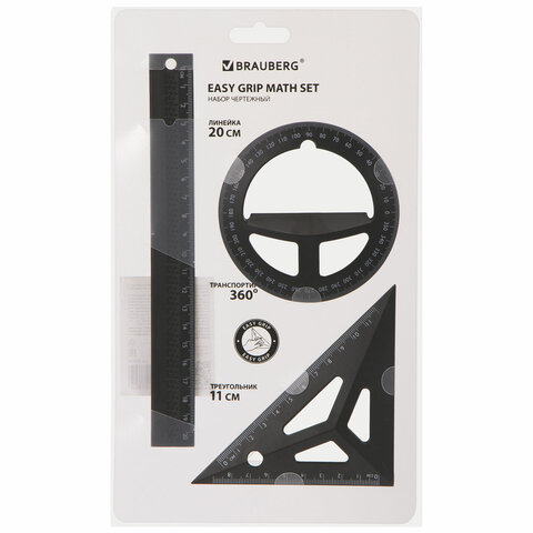 Чертежный объемный набор BRAUBERG предназначен для выполнения чертежных и измерительных работ.