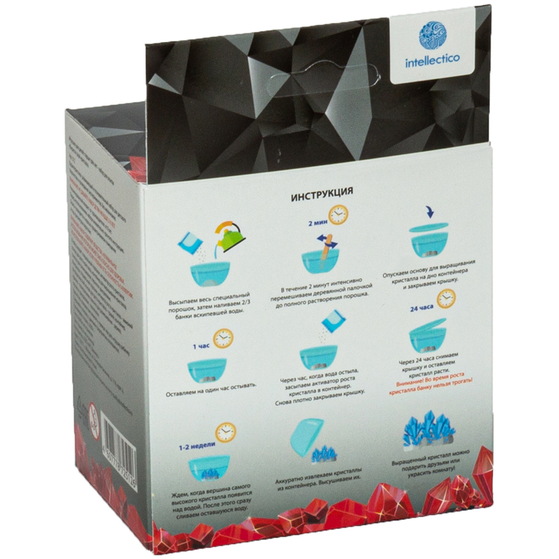 Набор для выращивания кристаллов поможет ребенку понять как формируются сталактиты и сталагмиты в пещерах, и почему на создание такой красоты уходит тысячи лет. Просто нужно будет развести кипятком порошок для роста кристаллов, добавить основу и засыпать затравочные кристаллы. Это очень легко, поэтому даже ребенок справится с задачей под присмотром родителей. Из кристаллов можно собрать целую коллекцию и использовать как необычное украшение комнаты, подарить друзьям или исследовать химические и физические свойства кристаллов. К опыту прилагается инструкция с рекомендациями.