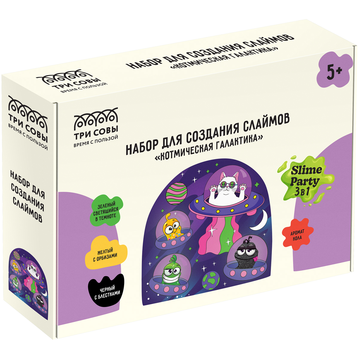 УЦЕНКА - Набор для создания слаймов 3 в 1 ТРИ СОВЫ Slime party "Котмическая галактика", светится в темноте, с орбизами, с блестками, аромат кола, карт