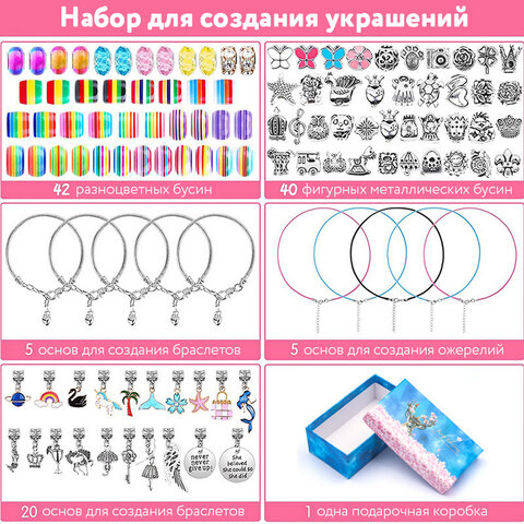С МЕГА набором для создания украшений для девочки BRAUBERG KIDS ребенок может сделать браслеты, колечки, кулоны, подвески, чокеры, шнурки для телефона и очков, ожерелья и множество других поделок.