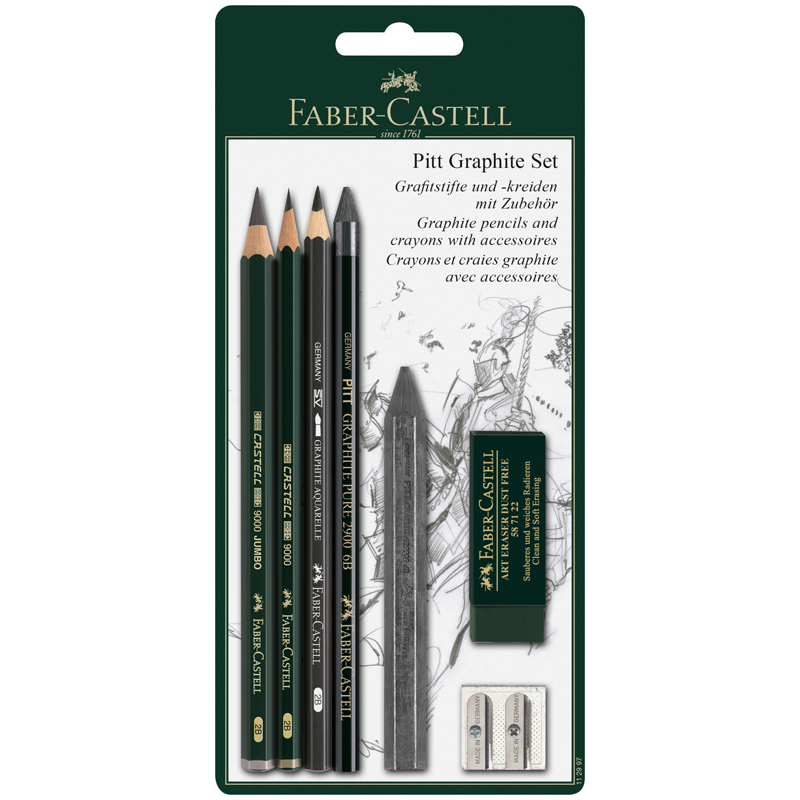 УЦЕНКА - Набор карандашей ч/г Faber-Castell "Pitt Graphite", 5шт.+ластик+точилка, 2B/6B, заточен., блистер