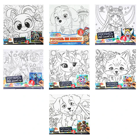 Картина детская по контуру, АССОРТИ 7 видов, 15х15 см, на подрамнике, акрил, кисти, МУЛЬТИ АРТ, 5902