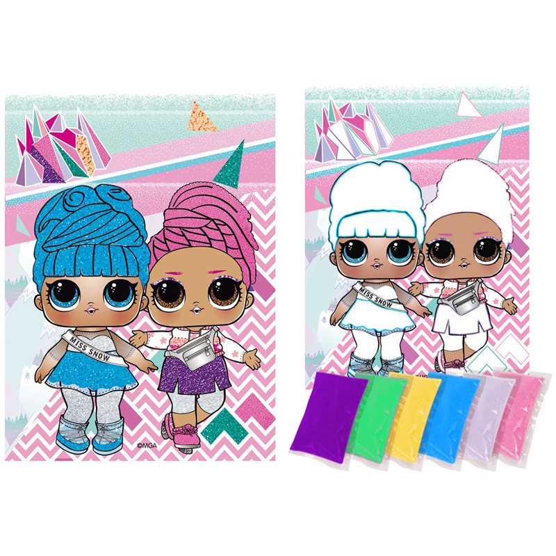 Аппликация сверкающим песком LOL SURPRISE! Chill out - чудесный подарок для поклонницы LOL. Девочка сама, с помощью цветного песка и глиттера, сможет создать невероятно красивую, сверкающую картинку с любимыми персонажами.