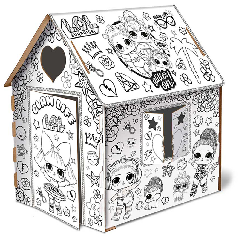 Ростовой дом раскраска для детей, изготовленный из плотного экологичного гофрокартона.Домик в стиле LOL, порадует вашего ребенка. Домик состоит из 5 элементов: передняя, задняя и 2 боковые стены, крыша. Модель легко собирается и разбирается без клея и инструментов. Трёхслойный гофрированный картон. Размеры домика в собранном виде: 75х90х110 см. Упаковка: цветная картонная коробка, с ручкой. Размеры упаковки: 98х39х7,5 см. Рекомендуемый возраст: 3+