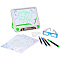 В комплект входит: фломастер – 4 шт., картинка-трафарет – 3 шт., очки, планшет-доска, салфетка.