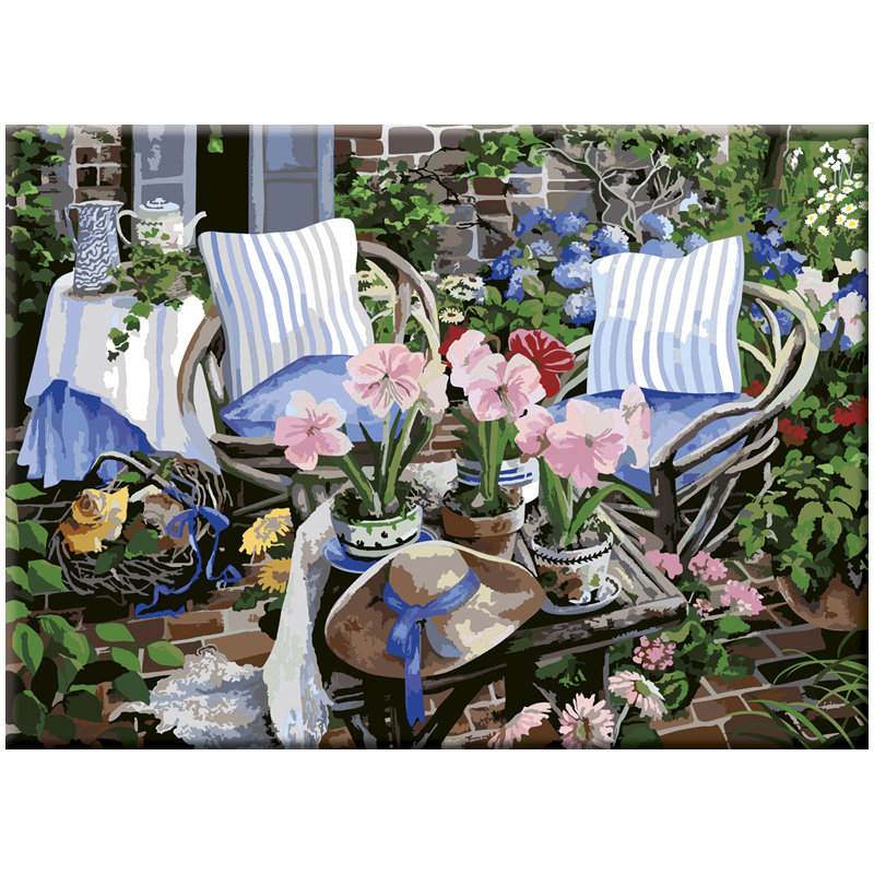 Картина по номерам на фигурном холсте ТРИ СОВЫ "Тропический сад", форма многоугольник, с акриловыми красками и кистями