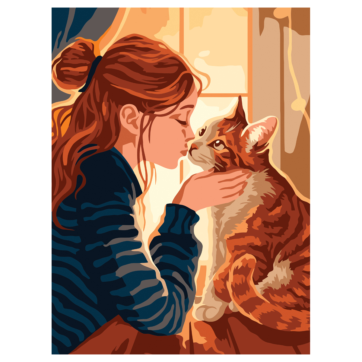 УЦЕНКА - Картина по номерам на картоне ТРИ СОВЫ "Девушка и кошка", 30*40, с акриловыми красками и кистями