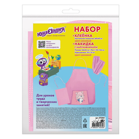 Набор для уроков труда ЮНЛАНДИЯ - незаменимая вещь для защиты одежды и рабочей поверхности на уроках труда и занятиях творчеством. В набор входит: накидка-фартук с нарукавниками и клеенка. Предусмотрен для многоразового использования.