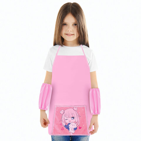 Набор для уроков труда BRAUBERG KIDS, клеенка ПВХ, накидка фартук с нарукавниками, "Anime style", 272362