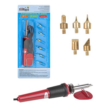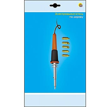 Прибор для выжигания " Рыжий кот " по дереву, состав набора: 1 выжигатель 40Вт, 6 насадок, 1 подставка, блистер 15*33*3,5см