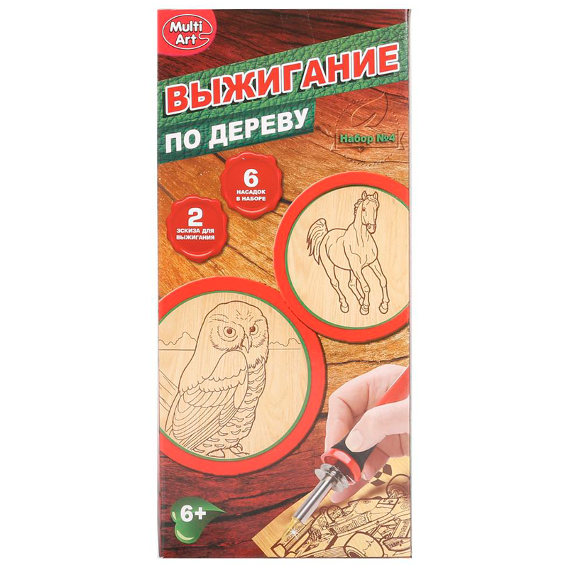 Набор для выжигания MultiArt "Лошадь и Сова" с прибором, 2*A5, картонная коробка