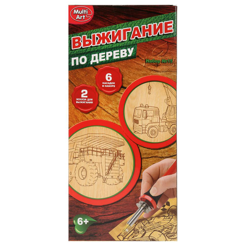 Набор для выжигания MultiArt "Строительная техника" с прибором, 2*A5, картонная коробка
