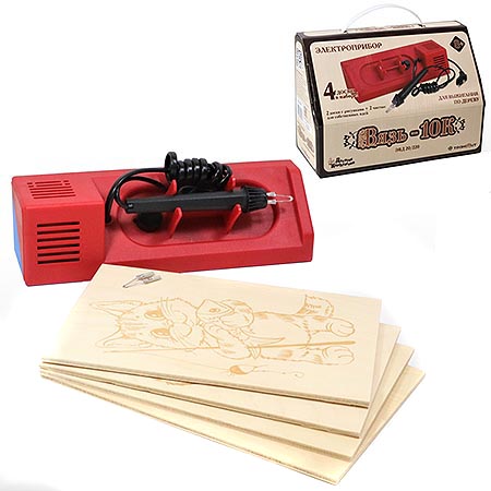 Набор для выжигания " Десятое королевство " Вязь10К, в наборе: электроприбор для выжигания по дереву– 1 шт, доски с рисунком– 2 шт, чистые доски– 2 шт, запасная игла– 1 шт, руководство по эксплуатации– 1 шт, картонная упаковка 23,5*10*16см