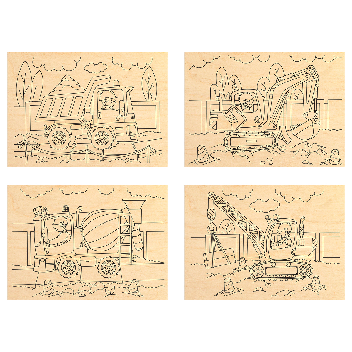 Набор досок для выжигания по дереву «ТРИ СОВЫ» «Строительная техника» – отличный подарок для ребенка от 6 лет.