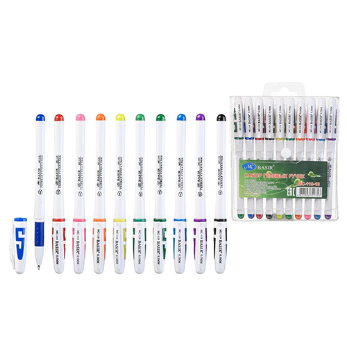 Набор гелевых ручек " Basir " 10цв 1,0мм белый корпус, цвет колпачка соответствует цвету чернил, упаковка ПВХ, европодвес
