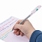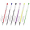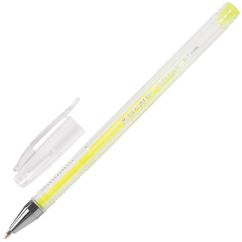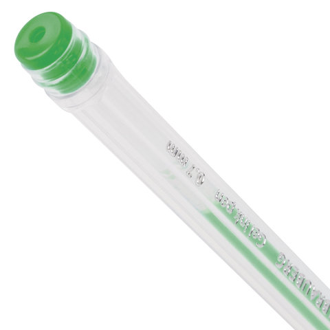 Ручка имеет круглый прозрачный корпус и рифление в зоне захвата для удобства письма. Сменный стержень длиной 135 мм со стандартным наконечником позволит использовать ручку максимально долго. Диаметр пишущего узла, равный 0,7 мм, создает линию письма, равную 0,5 мм. Набор включает гелевые ручки из 6 различных цветов чернил: красный, синий, черный, фиолетовый, желтый, зеленый. Рекомендован для детского творчества.