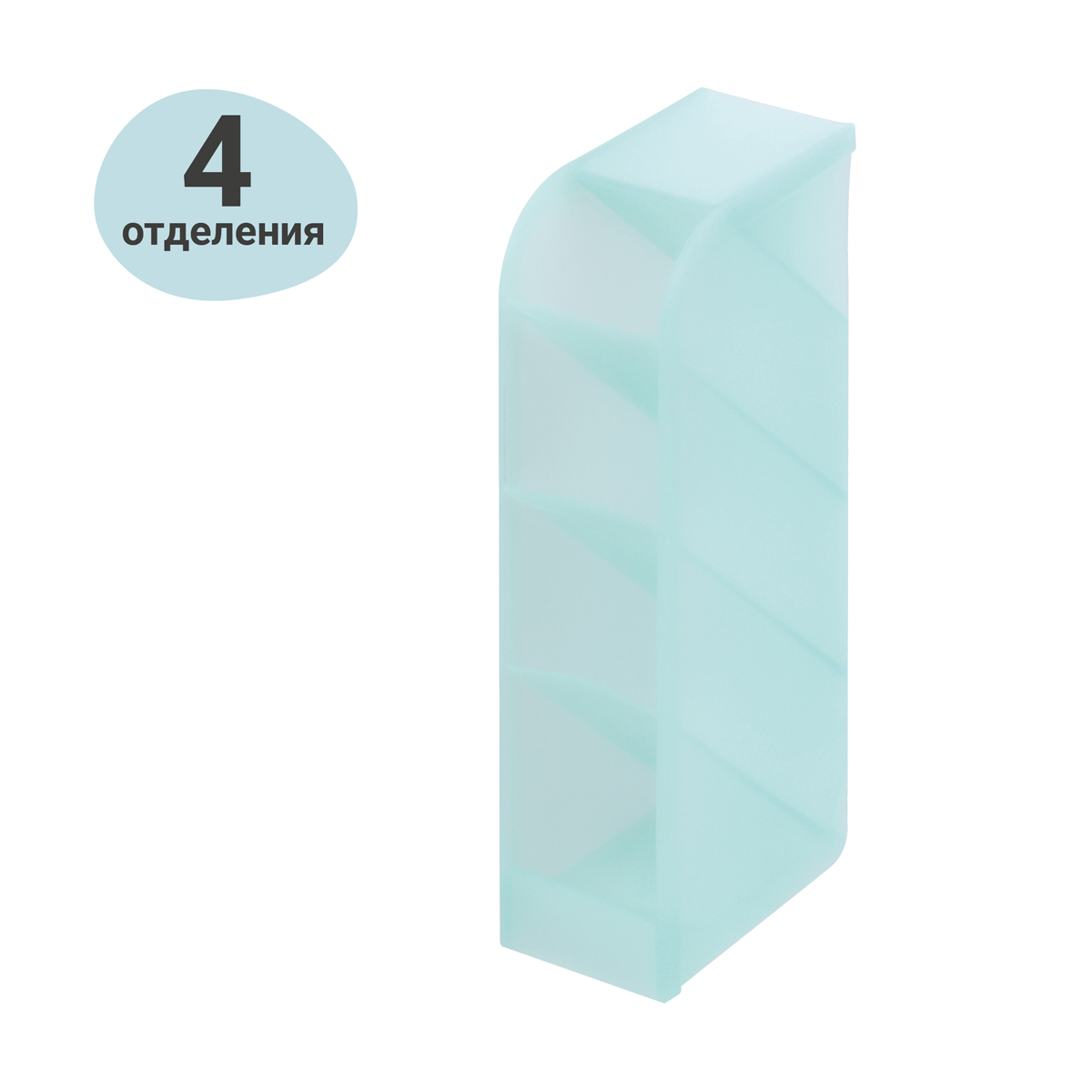 Настольная подставка MESHU на 4 секции в мятном цвете предназначена для хранения пишущих принадлежностей и канцелярских мелочей. Размер – 5*8,5*20 см. Подставка изготовлена из пластика. Её можно расположить как вертикально, так и горизонтально. Упакована в термоусадочную пленку.<br/>• Материал: пластик;<br/>• Цвет: мятный;<br/>• Количество секций: 4;<br/>• Размер: 5*8,5*20 см.
