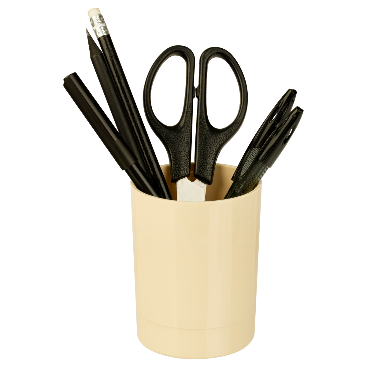 Подставка-стакан "СТАММ" серии "Лидер" предназначен для хранения письменных и канцелярских принадлежностей. Удобная круглая форма. Легкий и прочный корпус. Подставка впишется в любое рабочее пространство благодаря минималистичному дизайну. Цвет - бежевый. Изделие высотой 90мм и диаметром 65мм выполнено из качественного пластика.