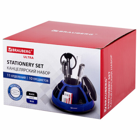 Канцелярский набор BRAUBERG "Офисный 100", 10 предметов, вращающаяся конструкция, черный, блистер, 236949