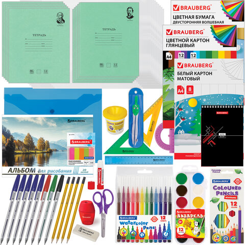 Набор канцелярских принадлежностей BRAUBERG "УНИВЕРСАЛЬНЫЙ" для выпускников детского сада и учеников начальной школы в красочной упаковке. Скомплектован на основе рекомендаций учителей.