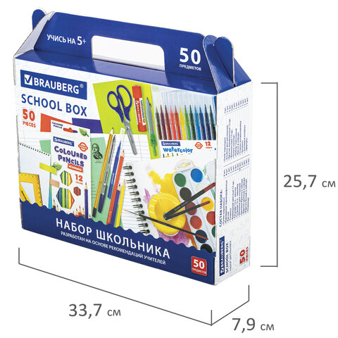 Набор школьных принадлежностей в подарочной коробке BRAUBERG "ШКОЛЬНЫЙ УНИВЕРСАЛЬНЫЙ", 65 предметов, 881133