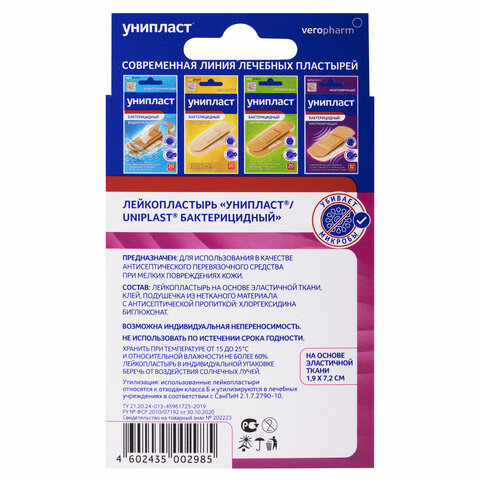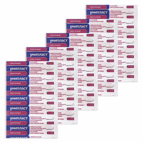 Набор лейкопластырей бактерицидных 20 шт., УНИПЛАСТ, 1,9х7,2 см, натуральные, 20024374