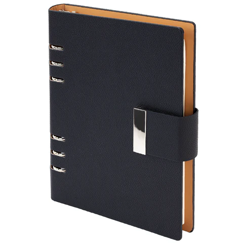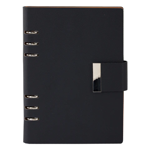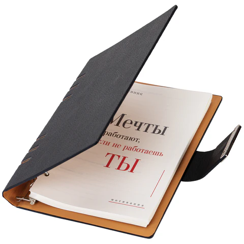 Подарочный набор включает в себя недатированный ежедневник на кольцах с внутренним блоком из 100 листов кремовой бумаги плотностью 70 г/м2. Благодаря классическому формату А5 (165x229 мм) ежедневник удобно использовать как в офисе, так и на выездных деловых встречах. Твердая обложка стилизована под текстурную кожу. Ежедневник фиксируется магнитной застежкой, поэтому не откроется в сумке или портфеле и страницы не помнутся.