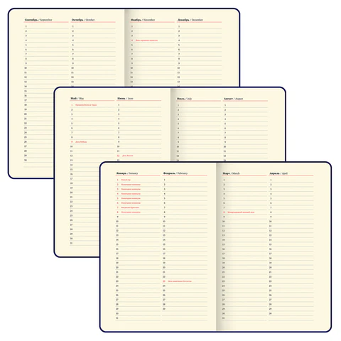 Подарочный набор включает в себя недатированный ежедневник с внутренним блоком из 160 листов кремовой бумаги плотностью 70 г/м2. Каждая страничка имеет перфорированный угол. Благодаря классическому формату А5 (145x212 мм) ежедневник удобно использовать как в офисе, так и на выездных деловых встречах. Твердая обложка стилизована под текстурную кожу. Ежедневник фиксируется магнитной застежкой, поэтому не откроется в сумке или портфеле и страницы не помнутся. Дополнениями являются закладка-ляссе и держатель для ручки.