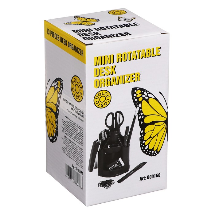 Набор канцелярских принадлежностей СТАММ "MiniDesk", 13 предметов, вращающийся, черный