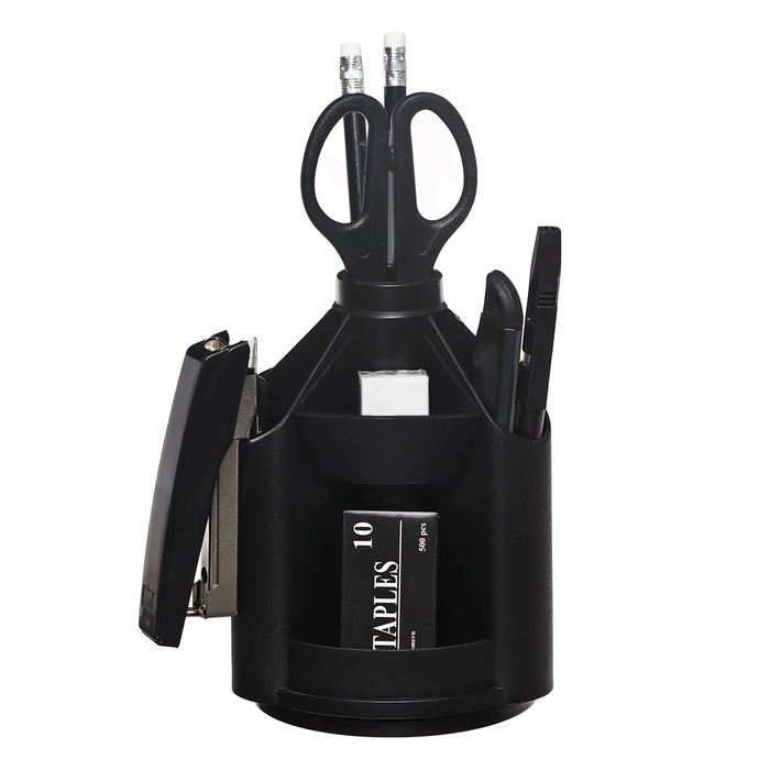 Набор канцелярских принадлежностей СТАММ "MaxiDesk", 14 предметов, вращающийся, черный
